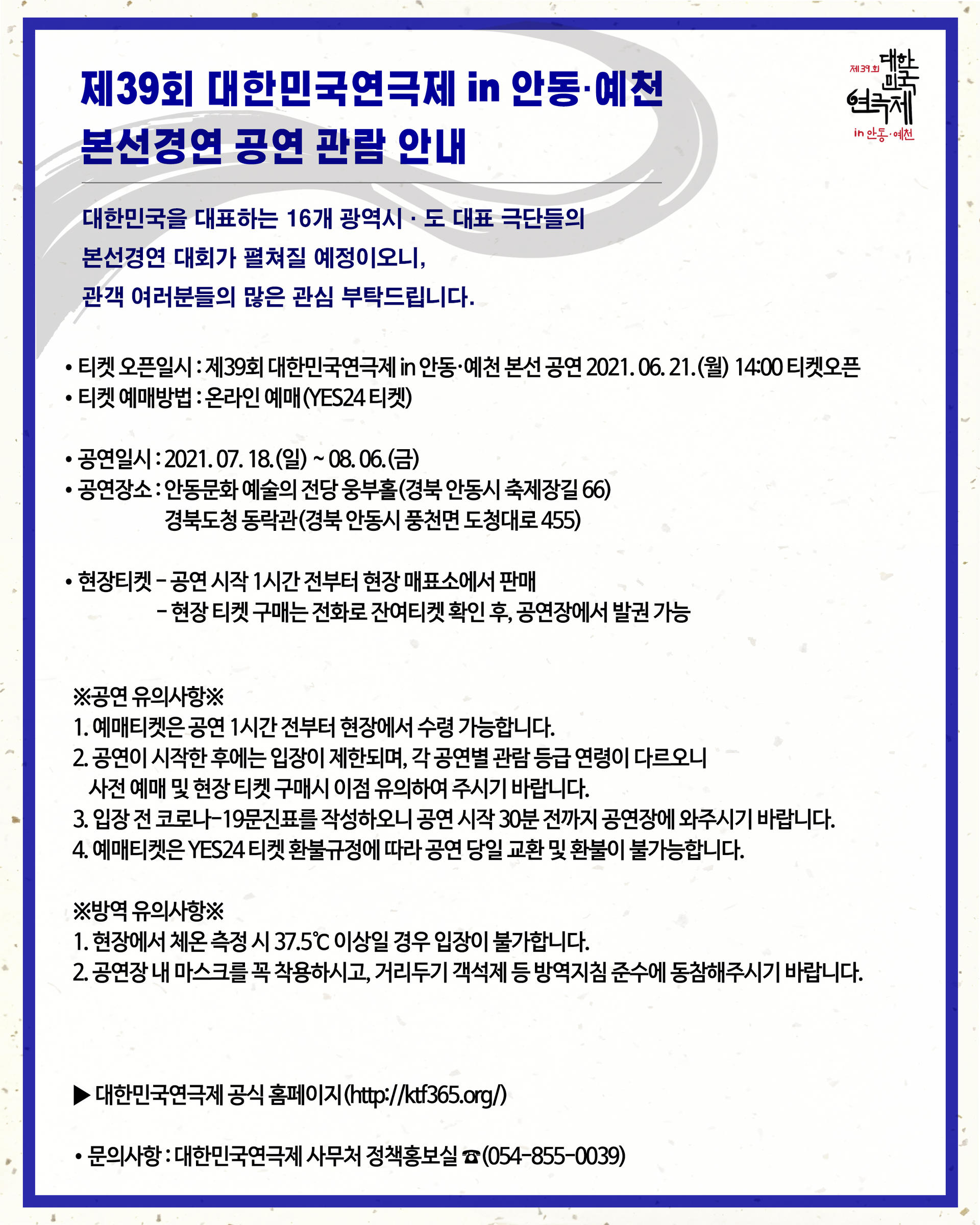 [공지] 제39회 대한민국연극제 in 안동·예천 본선경연 공연 관람 안내